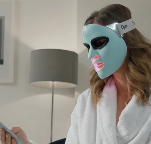 The Qure Q-Rejuvalight Pro LED Mask is an at-home LED light therapy device designed to target fine lines, breakouts, and dullness in just one 3-minute treatment.